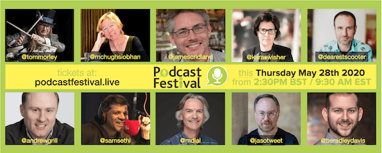 If you’d like to attend the festival, tickets are still available at podcastfestival.live at $25 (USD) each. It’s tomorrow, May 28 at 9:30am EST (6:30am PST and 2:30pm BST). There’ll be ways for you to unite, network and exchange with other podcast enthusiasts, too.
